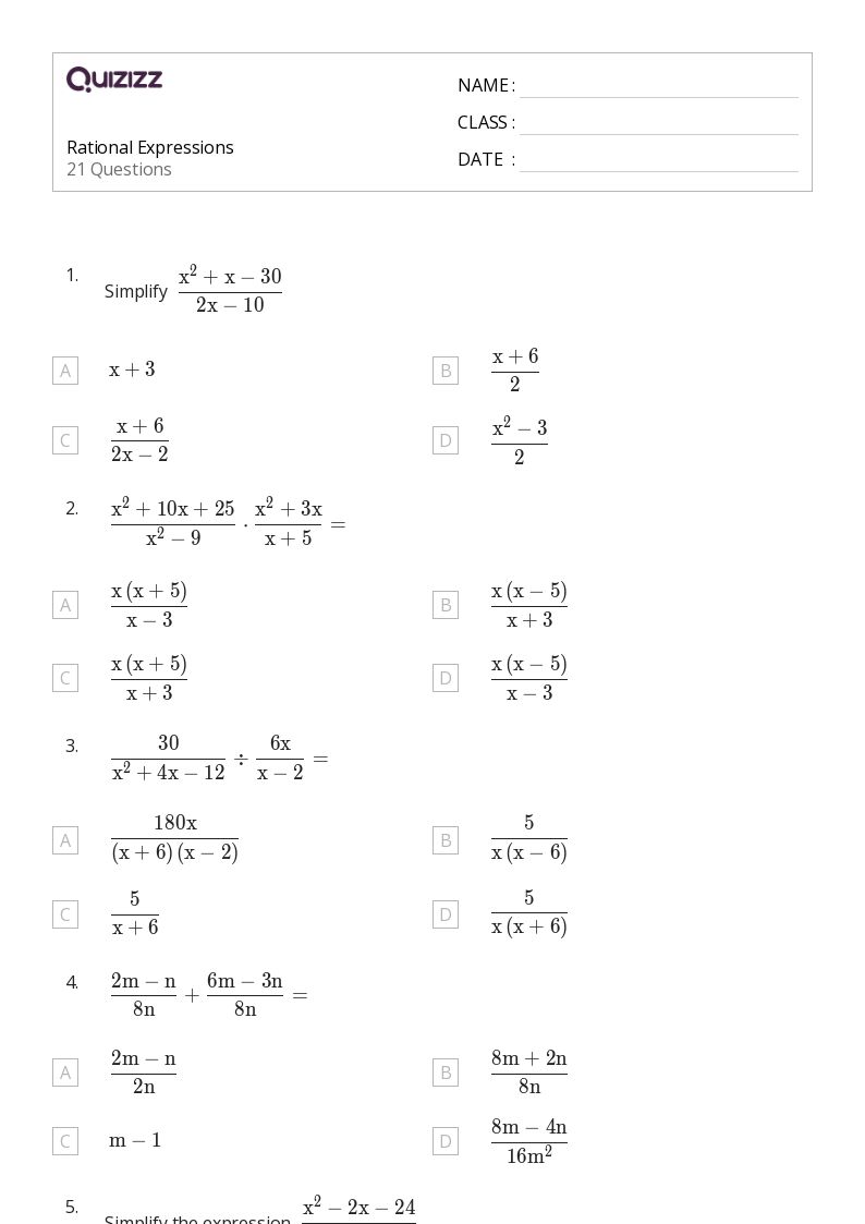 50+ Rational Expressions worksheets on Quizizz Free & Printable 📥 Download Image