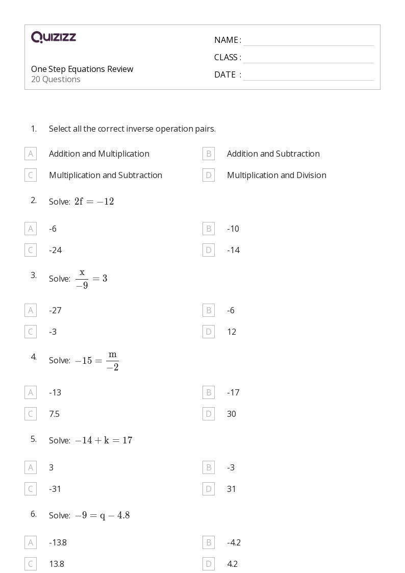 50+ OneStep Equations worksheets on Quizizz Free & Printable 📥 Download Image