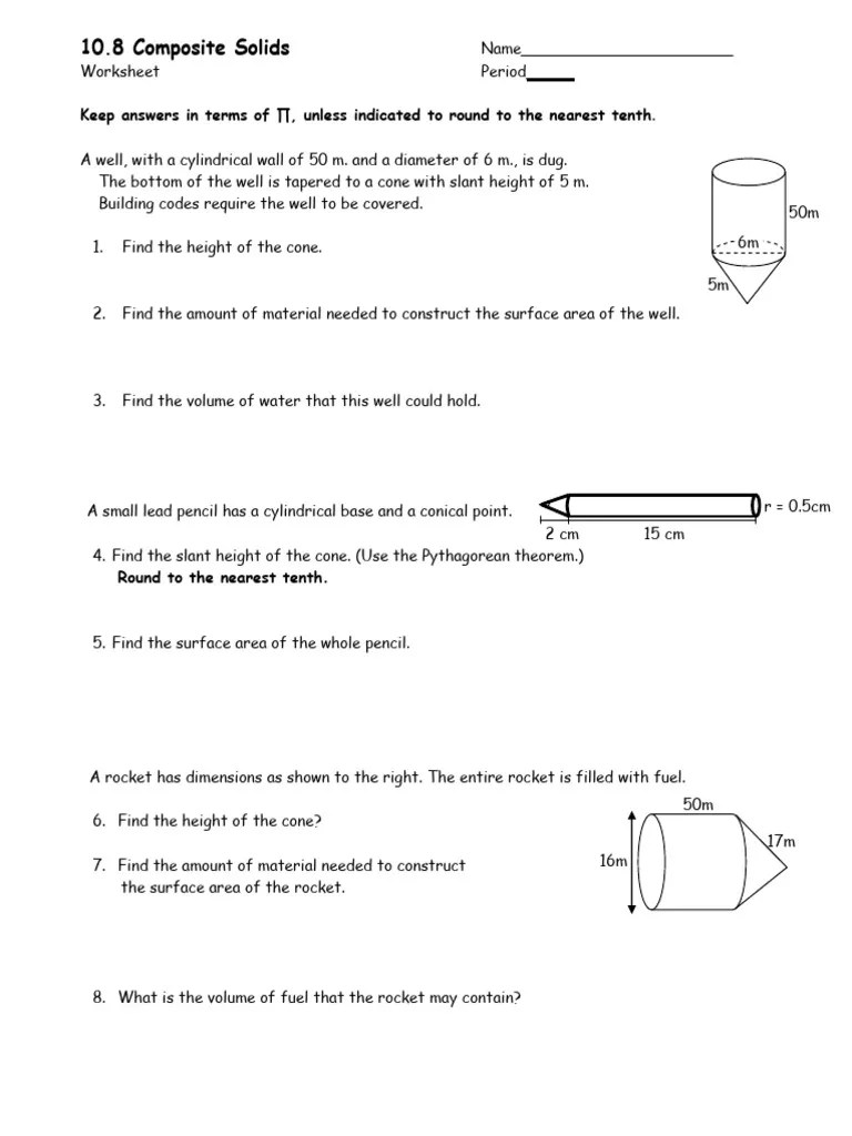 Volume Of Composit Solids Worksheet - 1) total surface area of the play top = 11.88 π cm². Worked examples and precise explanations accompany. Calculate the surface area of composite shapes. Find the volume of each solid figure. Find the missing lengths and volume of each solid figure. The objective of this collection of pdf worksheets on finding the volume of composite figures is to provide practice in determining the volume of compound solids made up of two or more 3d.